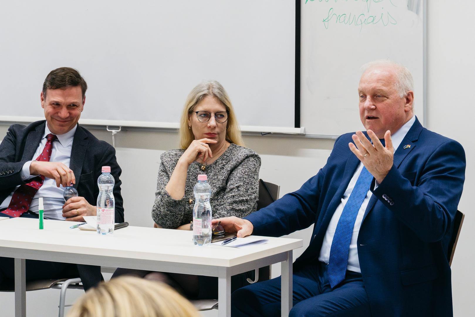 A Robák Ferenc (Ny. nagykövet, NKE c. egyetemi docens) és Fejérdy Gergely (PPKE Történelemtudományi Intézet és vezető kutató, MKI) társaságában lezajlott beszélgetés után a hallgatóknak lehetőségük nyílt eszmecserét folytatni a panel résztvevőivel.